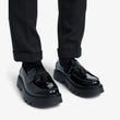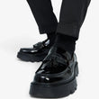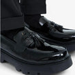 Mocassins Homme en Cuir Verni Noir à Glands et Plateforme : Le Style à l’État Pur